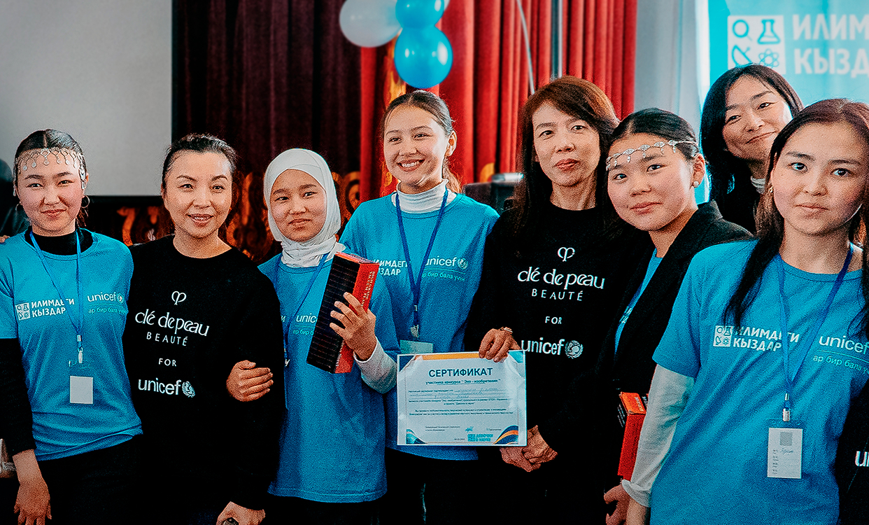 キルギスの少女たちは、教育を受けるうえで根強い壁に直面し、その可能性を十分に発揮できずにいます。クレ・ド・ポー ボーテは、ユニセフとのパートナーシップを通じて、こうした障壁を取り除くための独自のアプローチに取り組んでいます。私たちは共に、少女たちが科学、技術、工学、数学(STEM)分野を学び、将来の就労に役立つスキルを身につけられるよう支援しています。