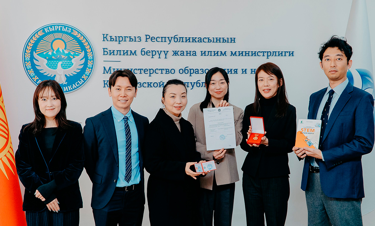クレ・ド・ポー ボーテの代表一行は、教育科学省との会合の場でメダルを授与されました。これは、ユニセフとのパートナーシップを通じてキルギスの少女たちの教育・就労支援に長年取り組んできた功績が評価されたものです。