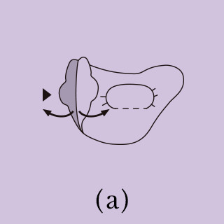 - ถือแผ่นมาสค์อย่างระวังในตำแหน่งที่มีลูกศร (▶) ระบุ แล้วแยกมาสค์ทั้งสองแผ่นออกจากกัน (a)