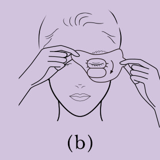- ทำซ้ำกับดวงตาอีกข้าง จากนั้นจึงหลับตาก่อนพลิกแผ่นพับทับลงปิดเปลือกตา (c)