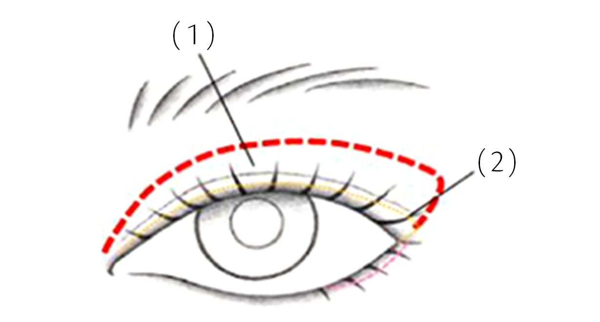 - ใช้แปรงทาขนตาแบบฟองน้ำหัวแหลมวาดเส้นบางๆ ตามแนวขอบตาด้วยเฉดสี D